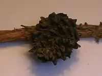 The pineapple or pseudocone gall[2] is a type of insect-formed gall, or abnormal outgrowth of plant tissue, that develops as a chemically induced distortion of needles, observed mostly on Norway spruce and Sitka spruce.