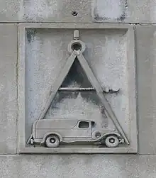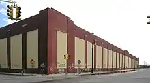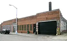 The Fisher Body Plant 21 is located on the southeast corner of Piquette and St. Antoine.[11] It was designed in 1921 by Smith, Hinchman & Grylls for Fisher Body, who manufactured Buick and Cadillac bodies in the plant until 1925.[15] The plant is six stories tall, with a footprint of 200 feet (61 m) by 581 feet (177 m) and an interior area of 536,000 square feet (49,800 m2).[16] During the Great Depression, Fisher suspended production and the building was used as a soup kitchen and homeless shelter.[17] The plant was used as an engineering design facility from 1930–1956;[18] during World War II, the factory produced Lockheed P-80 Shooting Star Planes, Vought F4U Corsair Shipboard Fighters, and some assemblies for B-25 Mitchell bombers.[17] After 1956, the plant was used to build Cadillac limousine bodies; GM closed the plant in 1984.[17] After GM left, several paint companies used the building; it closed for good in 1994.[16][17] In 1999, as a result of unpaid property taxes, the building became the property of the City of Detroit and was re-addressed as 6051 Hastings Street. The building was documented by the Historic American Engineering Record in 2003.[19]