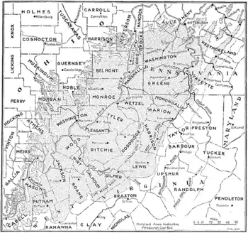The Pittsburgh Coal Seam is the thickest and most extensive coal bed in the Appalachian Basin;[1] hence, it is the most economically important coal bed in the eastern United States. The Upper Pennsylvanian Pittsburgh coal bed of the Monongahela Group is extensive and continuous, extending over 11,000 mi2 through 53 counties. It extends from Allegany County, Maryland to Belmont County, Ohio and from Allegheny County, Pennsylvania southwest to Putnam County, West Virginia.[2][3]