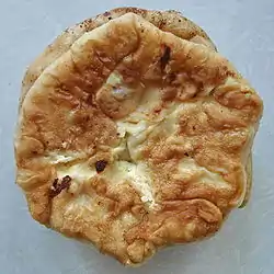 Plăcintă [1] (Romanian pronunciation: [pləˈtʃintə]) is a Romanian and Moldovan traditional pastry resembling a thin, small round or square-shaped cake, usually filled with apples or a soft cheese such as Urdă.