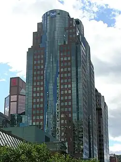 The Bell Media Tower is part of the Place Montreal Trust complex. Place Montreal Trust is named after the Montreal Trust Company which was a lender for its construction as well as one of its original co-owners (along with CDPQ and Cadillac Fairview-Shafter) and the main tenant of the tower.[2]
