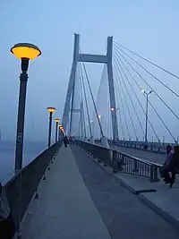 | Bridge | ![]() | New Yamuna Bridge | 2004 | It is the longest cable-stayed bridge of India, located in Prayagraj[19][20][21] The bridge was constructed by the end of 2004 with the aim of minimizing the traffic over the Old Naini Bridge.[22] The bridge runs north–south across the Yamuna river connecting the city of Allahabad to its neighborhood of Naini. |