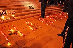 Plamen Goranov (Bulgarian: Пламен Горанов) (20 October 1976 – 3 March 2013) was a Bulgarian photographer[1] and mountain climber,[2] and a Varna-based local protest leader of the 2013 Bulgarian nationwide protests. He became a symbol of the Bulgarian social protest movements and a catalyst for nationwide protests and government resignations when on 20 February 2013 he set himself on fire in front of the Varna municipal building. He died from his injuries in a local hospital on 3 March, Bulgarian Liberation Day, a Bulgarian national holiday celebrating liberation from five centuries of Ottoman rule.[3][4] Goranov protested against the organized crime group TIM and the TIM-controlled Varna mayor Kiril Yordanov.[5][6]