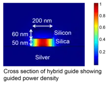 - ↑ Oulton, R. F.; Sorger, V. J.; Genov, D. A.; Pile, D. F. P.; Zhang, X. (2008-07-11). "A hybrid plasmonic waveguide for subwavelength confinement and long-range propagation". Nature Photonics. 2 (8): 496–500. Bibcode:2008NaPho...2.....O. doi:10.1038/nphoton.2008.131. hdl:10044/1/19117.