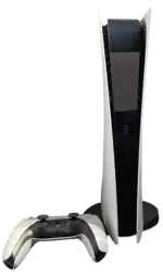 Original PlayStation 5 with a 4K Blu-ray disc drive and a DualSense controller