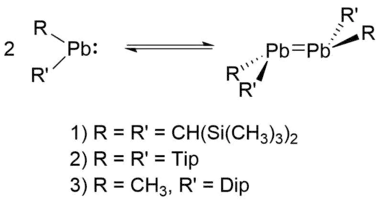 - ↑ Stürmann, Martin; Saak, Wolfgang; Marsmann, Heinrich; Weidenbruch, Manfred (1999). "Tetrakis(2,4,6-triisopropylphenyl)diplumbene: A Molecule with a Lead–Lead Double Bond". Angewandte Chemie International Edition. 38 (1–2): 187–189. doi:10.1002/(sici)1521-3773(19990115)38:1/2<187::aid-anie187>3.0.co;2-2. ISSN 1521-3773.