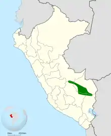 These birds occupy low shrubby areas at the edge of humid evergreen forests and in adjacent overgrown gardens.[6] It is also found in secondary forests with tall bamboo along the foothills of the Andes in Southern Peru.[7]