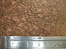 PVA can be characterized by speckled, combined hyper- and hypopigmentation in the plaques or patches of affected skin.[5] Hyperpigmentation is excess coloration, or darkening of the skin,[8] while hypopigmentation is a diminished or pallid coloring to the skin. Pigmentation changes in PVA, apparent in the epidermal (outermost) skin layer, may be attributed to incontinence (leaking out) of melanin from melanocytes into the dermal skin layer below.[5] Inflammation of the skin and cutaneous tissue, common with PVA,[7] also contributes to color changes in the skin, typified by redness. Telangiectasia, the visible "vascular" element of PVA, is the dilation of small blood vessels near the skin surface.[5] Skin atrophy, a wasting-away of the tissue comprising the skin, is a prominent part of PVA and effects the dermal, and particularly the epidermal layer.[5] This, in part, is the result of degenerative liquefaction of the stratum basale (bottom cell-layer) of the epidermis.[5] Atrophy of the skin gives it a thin, dry and wrinkled appearance, which in PVA-affected individuals has been described as "cigarette paper".[7] Hyperkeratosis, a thickening of the stratum corneum (top cell-layer of the epidermis), has also been reported.[5][9]
