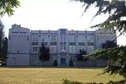 Designed by Fred Townley and Matheson, the main building was built in 1929 in a Collegiate Gothic style.[4] Construction of the school was commissioned by the Municipality of Point Grey prior to amalgamation with the City of Vancouver. Point Grey Secondary was built originally as a junior high school. The first students began classes in September 1929 and the building served as a junior high school until 1965 when it became a full secondary school. In 1965, a new wing was added with a gym, laboratories and a library. In 2006, Point Grey, in conjunction with the Parks Board, completed a new artificial turf field, and have upgraded the track surrounding it to a rubber surface. Point Grey also offers Advanced Placement courses in Biology, Calculus, Chemistry, Computer Science, English, Physics, and Psychology.[5]