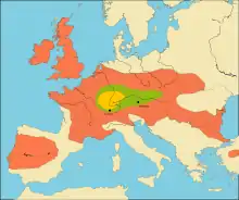 c.^ "Germanic" identification is used here as a broad approximation. The article deals with archeological cultures whose ethnic and linguistic identifications are often unknown or uncertain.