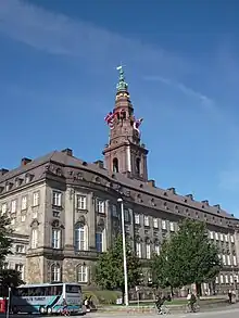 The politics of Denmark take place within the framework of a parliamentary representative democracy, a constitutional monarchy and a decentralised unitary state in which the monarch of Denmark, King Frederik X, is the head of state.[1] Denmark is a nation state. Danish politics and governance are characterized by a common striving for broad consensus on important issues, within both the political community and society as a whole.