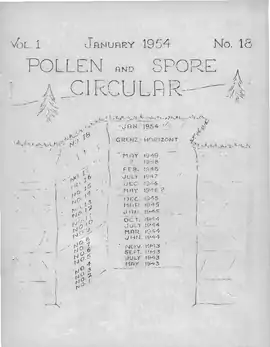 The first issue of the Pollen Analysis Circular was dated May 5, 1943 and published by Paul B. Sears (Oberlin College).[3] Subsequent issues were generally edited by Sears, sometimes in cooperation with L.R. Wilson.