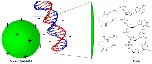 - ↑ Bielinska AU, Chen C, Johnson J, Baker JR (1999). "DNA complexing with polyamidoamine dendrimers: implications for transfection". Bioconjugate Chemistry. 10 (5): 843–50. doi:10.1021/bc990036k. PMID 10502352.