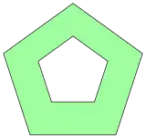 In geometry, a polygon with holes is an area-connected planar polygon with one external boundary and one or more interior boundaries (holes).[1] Polygons with holes can be dissected into multiple polygons by adding new edges, so they are not frequently needed.