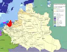 | ¹ Voivodeship of the Polish Crown in the Polish–Lithuanian Commonwealth Voivodeship of the Kingdom of Poland before 1569. ² Small portion of the Vistula Spit around Polski[1] | |||||||||