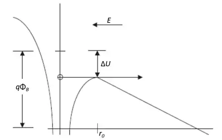 Poole–Frenkel effect for a Coulombic potential well in presence of an applied electric field.[4]