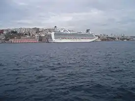 A cruise liner docked at the Port of Istanbul.
