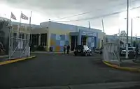The Port of Mayagüez, located northwest of downtown Mayagüez in Mayagüez Bay, is the third busiest port on Puerto Rico.[2] The port is situated along Puerto Rico routes 64, 341, and 3341, and stretches for 3.8 miles along the coast. Its main canal is 0.4 miles wide and its depth ranges from 47 to 120 feet; the water's depth along the piers ranges between 28 and 29 feet. The port is protected from rough seas by reefs which run along its northern and western sections.[3]
