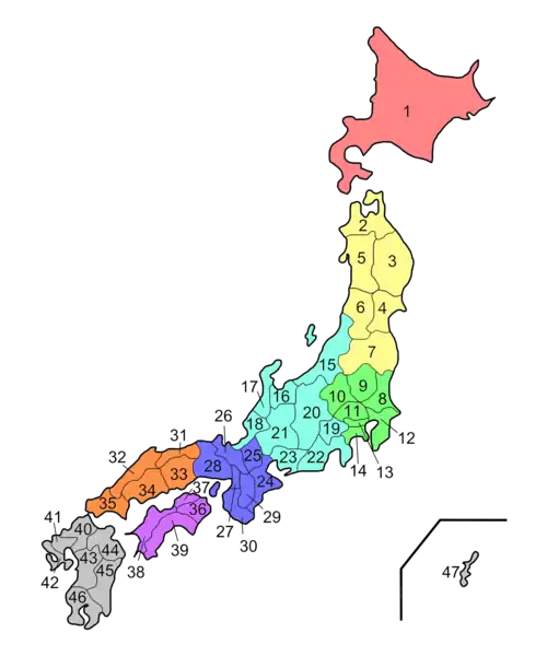 Japan is informally divided into eight regions. Most regions contains several prefectures (the exception being Hokkaidō) for a total of 47. Within these prefectures, there exist many local administrative units that are categorized into designated cities (17), core cities (37), special cities (44), cities, towns and villages depending on the unit's population size.