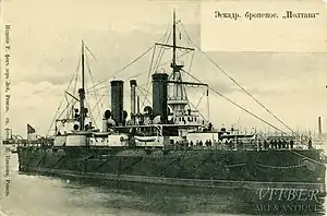 Poltava was salvaged after the Japanese captured Port Arthur and incorporated into the Imperial Japanese Navy. The ship, renamed Tango in Japanese service, participated in the Battle of Tsingtao in late 1914, during World War I. She was sold back to the Russians in 1916 and renamed Chesma as her original name was in use by another battleship. The ship became the flagship of the Russian Arctic Flotilla in 1917, and her crew supported the Bolsheviks later that year. Chesma was seized by the British in early 1918 when they intervened in the Russian Civil War, abandoned by them when they withdrew and scrapped by the Soviets in 1924. (Full article...)