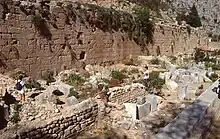 The Portico of the Aetolians is a large portico situated to the west of the sacred precinct of Apollo in Delphi. It measures 72.60 metres (238.2 ft) in length and 11.60 metres (38.1 ft) in width. It was provided with a double colonnade: the exterior one comprised 29 columns and the interior one 15. It was probably constructed initially in the 4th century BC. However, it has been associated with the Aetolian League and its increased power and influence over Delphi in the 3rd century BC. The reason for this might be that it sheltered arms dedicated by the Aetolians as part of their booty after their victory over the Galatians.[1]