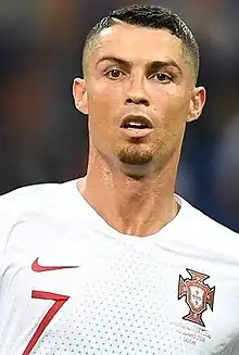 In the 2018 World Cup, Portugal were drawn into Group B with Spain, Morocco and Iran. In their opening match on 15 June, Portugal were against Spain, which ended in a 3–3 draw, with Cristiano Ronaldo scoring a hat-trick.[106] Ronaldo scored the only goal in a 1–0 victory against Morocco, breaking Puskás' record.[107] Portugal faced Iran on 25 June, in their last group match, which ended in a 1–1 draw, leading Portugal to progress to the knockout round as group runners-up behind Spain.[108] On 30 June, Portugal were eliminated following a 2–1 defeat to Uruguay in the round of 16.[109]