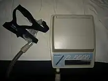 Positive airway pressure (PAP) is a mode of respiratory ventilation used in the treatment of sleep apnea. PAP ventilation is also commonly used for those who are critically ill in hospital with respiratory failure, in newborn infants (neonates), and for the prevention and treatment of atelectasis in patients with difficulty taking deep breaths. In these patients, PAP ventilation can prevent the need for tracheal intubation, or allow earlier extubation. Sometimes patients with neuromuscular diseases use this variety of ventilation as well. CPAP is an acronym for "continuous positive airway pressure", which was developed by Dr. George Gregory and colleagues in the neonatal intensive care unit at the University of California, San Francisco.[1] A variation of the PAP system was developed by Professor Colin Sullivan at Royal Prince Alfred Hospital in Sydney, Australia, in 1981.[2]