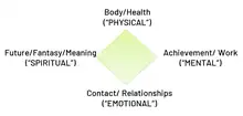 While these four domains are inherent in all humans, Western societies tend to prioritize the areas of physical well-being and professional success, whereas the Eastern hemisphere places greater emphasis on interpersonal connections, imagination, and future aspirations (a transcultural aspect of Positive Psychotherapy). Insufficient contact and lack of imagination are known to contribute to various psychosomatic illnesses.