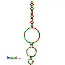 The potassium channel RNA editing signal is an RNA element found in human Kv1.1 and its homologues which directs the efficient modification of an adenosine to inosine by an adenosine deaminase acting on RNA (ADAR). The ADAR modification causes an isoleucine/valine recoding event which lies in the ion-conducting pore of the potassium channel. It is thought that this editing event targets the process of fast inactivation and allows a more rapid recovery from inactivation at negative potentials.[1]