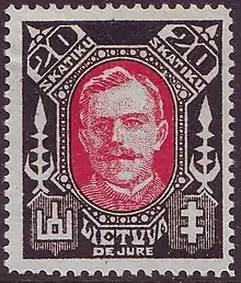 Povilas Lukšys on a stamp celebrating de jure recognition of Lithuania by other countries in 1922
