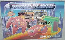 The Power Player Super Joy III (also known as Power Joy, Power Games, and XA-76-1E) is a line of handheld Nintendo Entertainment System/Famicom video game console clones. They are notable for legal issues based on the violation of intellectual property rights held by Nintendo and its various game licensees. Manufactured by Sinango, the Power Player line has been sold in North America, Brazil, Europe, Asia, and Australia.