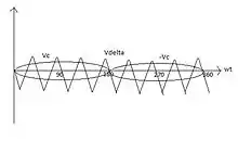 Inverters can use several modulation techniques to control their switching schemes. The carrier-based PWM technique compares the AC output waveform, vc, to a carrier voltage signal, vΔ. When vc is greater than vΔ, S+ is on, and when vc is less than vΔ, S- is on. When the AC output is at frequency fc with its amplitude at vc, and the triangular carrier signal is at frequency fΔ with its amplitude at vΔ, the PWM becomes a special sinusoidal case of the carrier based PWM.[15] This case is dubbed sinusoidal pulse-width modulation (SPWM).For this, the modulation index, or amplitude-modulation ratio, is defined as ma = vc/v .