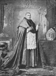 Archbishop Próspero María Alarcón y Sánchez de la Barquera (1827–1908) was a Mexican prelate of the Catholic Church.[1] As bishop of Mexico City, he was a leader of the Mexican Church and was inspired by Pope Leo XIII's Rerum Novarum.[1] He viewed the entrance of the Knights of Columbus into Mexico as evidence of the revival of lay Catholicism in Mexico.[1] Alarcon was a native of Mexico.