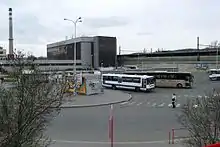 Praha-Holešovice railway station (Czech: Nádraží Praha-Holešovice) is located in Holešovice, a northern district of Prague, capital city of the Czech Republic. Opened in 1985, the station was originally used as a terminus for international fast trains coming from the east. Since the completion of the Nové spojení ("new connection") in 2010, however, these trains terminate at the more central hub, Praha hlavní nádraží. Nevertheless, international trains from hlavní nádraží running north to Dresden and Berlin, as well as northwest-bound inter-regional trains still call here. The station is adjacent to Prague Metro's Nádraží Holešovice station on line C and also to stops of the same name on lines 6, 12, and 17 of the city's tramway system, as well as a bus station.