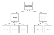 The identification of causal variants, genes and pathways leads to opportunities that bridge the divide between research and clinical usage. If successful, the subsequent discovery of therapeutic targets within implicated biological pathways have consequences for both treatment and prevention.[8] Furthermore, the downstream effect of identifying disease-relevant biomarkers allow for improvements to monitoring disease progression and response-to-treatment, where the implementation of these results into clinical decision support systems (CDSS) facilitate personalised medicine and outcomes.[9] Even if only marginally effectual, the repeated replication of associated variants can offer significant translational value.[7]