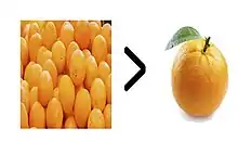 A simple example of non-satiated preference, in which a large number of oranges are preferred to a single orange.