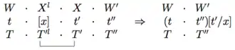 A sentence S that has type T is said to be grammatical if . We can prove this by use of a chain of . For example, we can prove that is grammatical by proving that :
