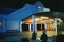 Following his death in 1959,[3] his widow Dorothy Brown, who was a noted New Orleans philanthropist,[4] renovated the property for a more modern look, including a wide arched canopy in the front.[3] In the early 1960s, the Mississippi Gulf Coast was emerging as a prime alternative to Florida as a southern vacation destination, and the Broadwater Beach Resort was considered the pacesetter for the area.[5] In 1963, Dorothy Brown spent $3 million to build a marina and a heliport.[2][5] The Broadwater Resort Marina plan was especially ambitious, involving hosting up to 150 sail and powerboats, and offering shore-to-ship maid service and room service to those docked, all in an effort to capture blue-water game fishing business.[5] When the marina opened in 1965, it was considered state of the art.[6] In 1968, she built the Broadwater Beach Sun Course on land originally owned by Jefferson Davis, and thus added golf as a prime attraction for visitors;[4][7] by 1974 a Sea Course was also present.[8] During the 1960s, a men's store was present in the hotel.[9] For entertainment, the hotel featured musicians from New Orleans and elsewhere.[10] From the 1950s on, operational control of the hotel and resort rested with Leigh MacConnell, one of the few women to rise to the top of the local hotel industry in that era.[11] In the 1960s the Broadwater Beach Resort found its glory years.[3] Hosting movie stars, leading politicians, and top business figures, as well as people on vacation,[11] it became the Gulf Coast's flagship resort.[3] During this decade, the iconic and colorfully lit Broadwater Beach Resort front sign was added.[3]