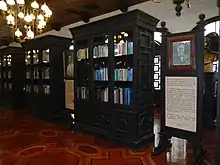 The Malacañang Library was established in 1946 as the Malacañan Palace Library as part of the Philippine Commonwealth Government.[2] It is a general reference library for use by official and employees of the palace; as well as students and researchers. In January 1950, it was placed under the Office of Public Information;[2] but was made a separate entity at a later date. After this period, two separate distinctions arose to refer to the collections of the Malacañang Palace. "Malacañan Palace Library" came to refer to collections inside the palace which is used by the President themselves while the "Malacañang Library" became the designation for the general circulation library which is available for use by Office of the President employees to the general public. The Malacañang Library started with a collection of around 400 volumes.[3]