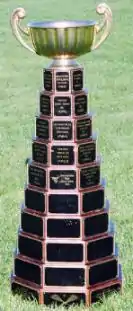The first two years (1964-1965) of competition were essentially the result of provincial championship play in Ontario. The Hagerville Warriors won the Ontario Senior ‘B’ Championship in 1964 – however at some point they were later included in the list of Canadian national champions for Senior ‘B’ as the Ohsweken Warrriors even though 1965 was reported in the newspaper press at that time as the first year of a National Senior ‘B’ Championship in Canada. The following year the Fergus Thistles won the Ontario Senior ‘B’ Championship. Port Alberni Labatts won the British Columbia Senior ‘B’ Championship and arrangements were made for a National Championship series to be played – however it never took place.