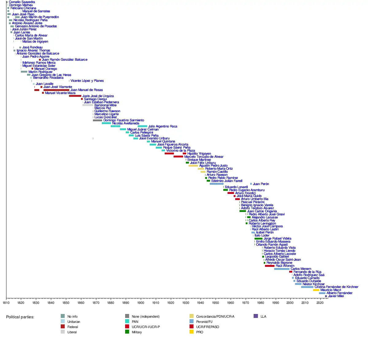 Timeline of head of states of Argentina by affiliation