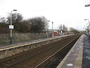 There is a half-hourly service in each direction (hourly in the evening) to Glasgow and Barrhead. Passengers for stations to Kilmarnock and beyond have to change at Barrhead, as most longer distance trains do not usually call here.[3] However, there is one service to Carlisle which calls here on Sundays only.