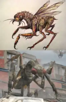 In 2008, the producers launched a competition for fans of the show to design their own creature for Primeval.[8] The competition ran from 30 January to 7 April[11] and the winning entry was the "Megopteran", a future carnivorous giant insect designed by then sixteen-year-old Carim Nahaboo.[8][9][12] Nahaboo's design was picked from the over 5000 submitted entries by the executive producer Tim Haines[12] and other members of the production team.[9] Nahaboo mainly based his design on a mantis.[12][13] The design was altered only slightly for Primeval, being given greater wings and shorter, stabbing forelimbs. Nahaboo was happy with the final design, liking the altered limbs and noting that it was still very much the same creature.[8] The Megopterans first appeared in the eighth episode of the third series[12] and also reappeared in the tenth episode.[13] Nahaboo was given a tour of both the Framestore office (Framestore being the company responsible for the visual effects of the series) and the set during the filming of the eighth episode, and met with directors, producers, artists and the actors.[8]