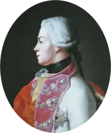 - ↑ Genealogie ascendante jusqu'au quatrieme degre inclusivement de tous les Rois et Princes de maisons souveraines de l'Europe actuellement vivans [Genealogy up to the fourth degree inclusive of all the Kings and Princes of sovereign houses of Europe currently living] (in French). Bourdeaux: Frederic Guillaume Birnstiel. 1768. p. 17.