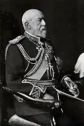 Following the death of Queen Victoria in 1901, the new queen, Alexandra, insisted on replacing Helena as President of the Army Nursing Service.[50] This gave rise to a further breach between the royal ladies, with King Edward VII caught in the middle between his sister and his wife.[51] Lady Roberts, a courtier, wrote to a friend: "matters were sometimes very difficult and not always pleasant." However, in accordance with rank, Helena agreed to resign in Alexandra's favour, and she retained presidency of the Army Nursing Reserve.[50] Though thought to be merely an artefact created by society ladies,[52] Helena exercised an efficient and autocratic regime—"if anyone ventures to disagree with Her Royal Highness she has simply said, 'It is my wish, that is sufficient.'"[53]