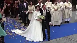 On 12 August 2013, Viktória and Prince Jaime of Bourbon-Parma, Count of Bardi announced their engagement. They married in a civil ceremony in Wijk bij Duurstede on 3 October 2013. A religious wedding was held on 5 October 2013 at the Church of Our Lady of the Heavens in Apeldoorn.[10] The wedding was attended by members of the Dutch royal family, including Former Queen Beatrix, King Willem-Alexander and Queen Maxima.[11] Per a 1996 royal decree issued by Queen Beatrix, Viktória was incorporated into the Dutch nobility and became entitled to the style Royal Highness upon her marriage.[12] She was bestowed with the title Countess of Montizòn by her brother-in-law, Prince Carlos, Duke of Parma, in 2013.[13][14]