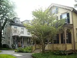 The Princeton Historic District is a 370-acre (150 ha) historic district located in Princeton, New Jersey that was listed on the U.S. National Register of Historic Places in 1975. It stretches from Marquand Park in the west to the Eating Clubs in the East, from the Princeton Cemetery in the north to the Graduate College in the south. The district encompasses the core parts of the campuses of the Princeton Theological Seminary and Princeton University. It also includes the business district centered on Nassau Street and many historic homes, both mansions in the western section and more humble dwellings in the Witherspoon/Jackson neighborhood. Notable churches within the district include Nassau Presbyterian Church, Trinity Episcopal, Nassau Christian Center, and the Princeton University Chapel. The district is home to seven of Princeton's nine, and New Jersey's fifty-eight, National Historic Landmarks, the largest concentration of such sites in the state.