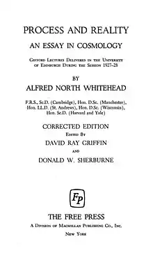 - 1 2 Whitehead, A.N. (1929). Process and Reality. An Essay in Cosmology. Gifford Lectures Delivered in the University of Edinburgh During the Session 1927–1928, Macmillan, New York, Cambridge University Press, Cambridge UK.
