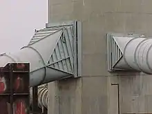 - Guide supports: Often rings inside a structural frame, with angle guides, that allow the duct to grow vertically while restraining the duct laterally for wind loads.