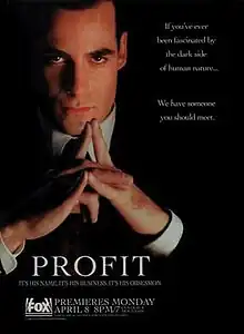 Profit is an American drama television series that originally aired in 1996 on the Fox Broadcasting Company (Mondays at 9:00 p.m. EST). The series was created (and occasionally directed) by David Greenwalt and John McNamara, and starred Adrian Pasdar as the eponymous lead character Jim Profit. In February 2008 repeat episodes began airing on Chiller (in the USA),[1] and in October 2010 on CBS Action (in Europe).[2]